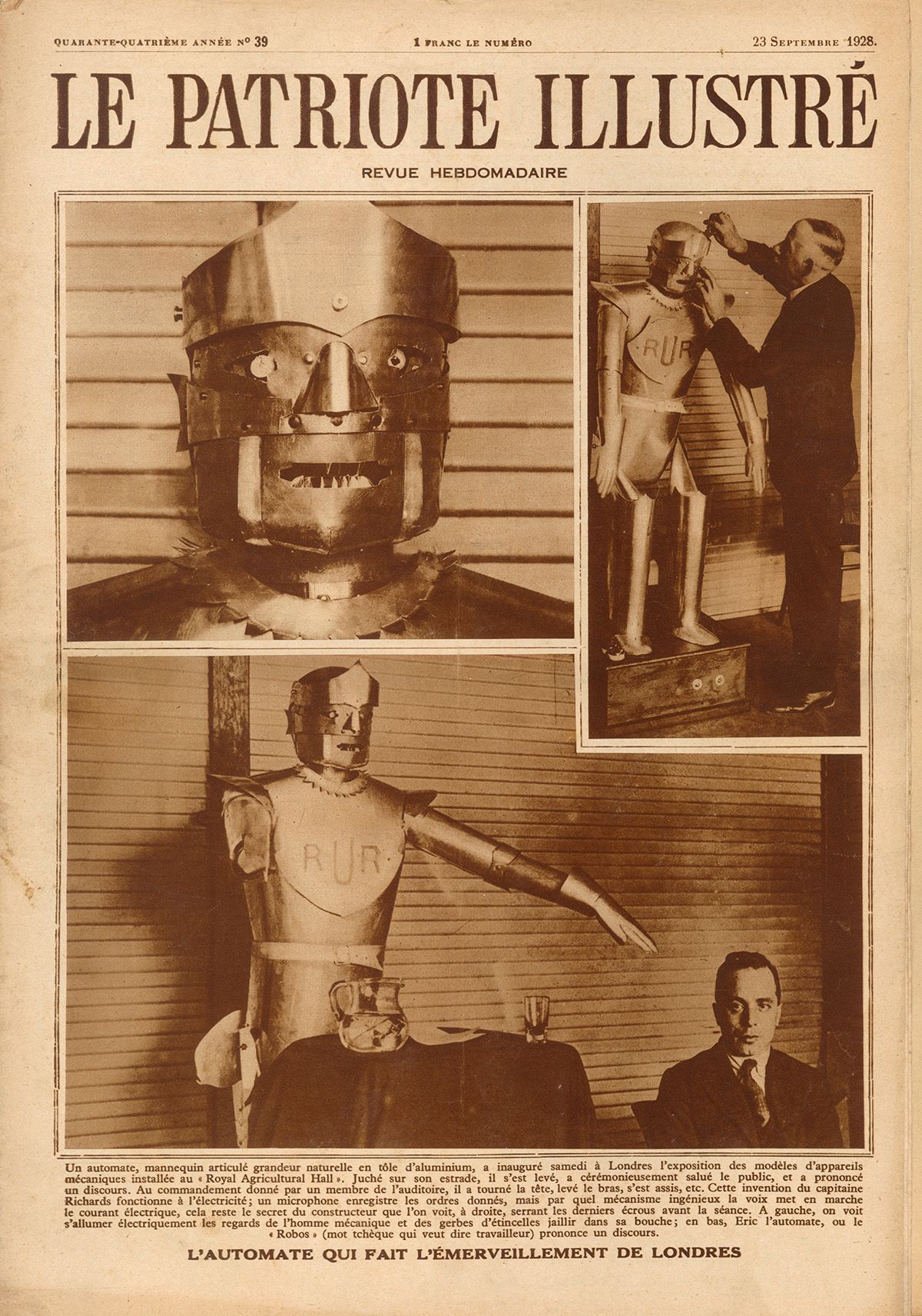 French magazine about the demonstration of Eric the Robot at the 1928 exhibition of the Model Engineers Society. [Public domain]